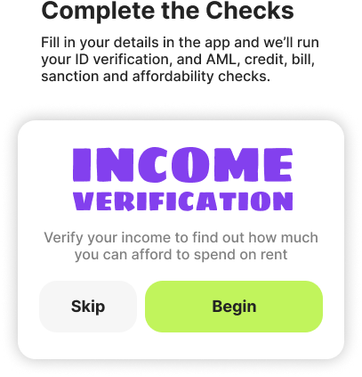 Fill in your details in the app and we’ll run your ID verification, and AML, credit, bill, sanction and affordability checks.