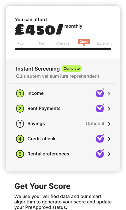 PreApprovd completes essential checks, including credit, AML, and affordability, to remove delays, helping tenants get approved faster and agents make quicker decisions.